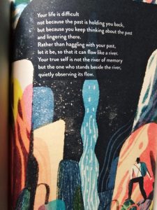 Di setiap babnya Haemin Sunim memulainya dengan judul bab dan ilustrasi. Haemin Sunim mulai bercerita tentang kejadian yang ada hubungannya dengan judul bab, entah itu pengalaman pribadinya atau cerita dari temannya lalu memberikan note kepada pembacanya tentang pesan moral atau hikmah yang bisa dipetik dari setiap kejadian yang dia ceritakan. Kemudian, Haemin meuliskan kata-kata bijak ke dalam beberapa baris yang ditulis mirip seperti puisi. Beberapa kutipan yang saya suka adalah