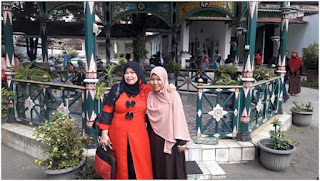 Beliau adalah sosok yang sangat senang berbagi, di perjalanan belau bercerita tentang “Sang Etnograf” yang merupakan buku beliau. Menurutku itu adalah kisah hidup beliau. Kembali dari Jogja, langsung mencari membeli buku beliau. Ini di ambil oleh suami beliau, kami berdua berpose di dekat bungalow yang ada dihalaman keraton.