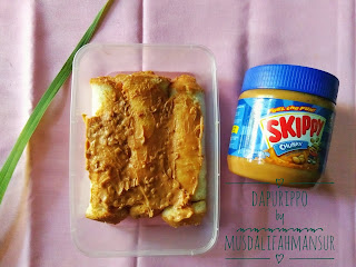 3.  Ambil 3 lembar roti tawar kemudian olesi selai skippy.